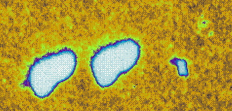 False color rendering of enlargement to show more clearly the outlines of the lights. Note that there is no trace of a connecting object. |