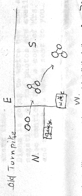 [Map from Mrs. Rowe - reoriented to match son's map orientation. Note her impression of object being on opposite side of house. - Ed.] |