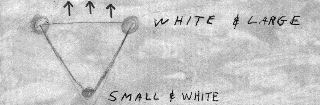 Dupont, Gazette staff reporter - Ed.] UFO Summary Report Form (2/25/67) William Rowe - age 15 Mr. Richard McGuire - age 32 Area was open countryside. Meat, vegetables, and milk had frozen solid... TV color did not return until the UFO left the area and then only upon adjustment. Estimated duration 10 minutes. Lights brighter than stars, compared to high beam car headlights. ? next to "larger" suggesting larger than grapefruit. Did not hear sound during "hovering" - sound compared to but lower than "a heavy four engine plane". Angular size was "much larger" than the head of a match at arms length. Elevation estimated steady at 30 degrees across the object course. Course estimated NE to SSW. Comments from followup by Thomas Scott, Chairman, NICAP Rhode Island - 3/26/69 She can not remember how many times the refrigerators froze up since the original instance but she finally settled on three or four times. She is not sure if the last instance of freeze-up occured this year but she thinks it was this year. : She is not sure just when this year, however. In every instance, she maintains, both refrigerators froze up simultaneously. They have no refrigerators other than the two in question; in each instance the food freezes "hard as a rock"; in each instance they must wait two or three days for the food to thaw; yet they have had no serviceman in to look into the situation; they are not sure how many times the phenomenon has occured; they continue to rely on the same refrigerators and they are remarkably passive about the whole thing. Mr. Rowe talks readily about the UFO but does not add to the discussion on the refrigerators except occasionally when it appears he is trying to help Mrs. Rowe out of a tight spot. Mr. Rowe answered questions about the wiring of his house and about the fusing which gave us a surprise. He told us the kitchen is wired with #8 and the remainder of the house with #12. The fuses on the refrigerator circuits are only 10 amp. The refrigerators are on two different circuits. We have not as yet been able to confirm these specifications and we hesitate to ask at this time since we wish to retain their friendship and cooperation. During the interview, Mr. Rowe mentioned that his wife had suffered a heart attack at some time prior to the sighting and because of the condition of her health she could not remain outdoors during the entire time while the UFO was visible. ... We do know Mrs. Rowe had a health condition at the time of the sighting. She may, therefore, been receiving medication. It is possible that "heart attack" could have been used in the loose sense to convey a message of illness to us. At the outset of the interview, Mrs. Rowe suggested that perhaps the refrigerator problem had nothing to do with the UFO sighting and the the problem had occured several times since. ... As Mr. Rowe points out, if the freeze-ups were do to E-M effect from the UFO, would not the television set be most likely affected? After all, that is an instrument so sensitive to magnetism that merely placing a telephone on the set will throw it off. The TV set was impaired at the time of the sighting but was readily restored to operating condition merely by turning the knobs. And, the only impairment was loss of color. As a matter of fact, Mrs. McGuire's children and, I believe, children of another daughter watched television all through the sighting. ...If the refrigerators were affected by UFO presence; if the food did freeze; it must have done so because the motor ran at a higher speed or for a longer duration. The refrigerator was doing what it is supposed to do, only more so. If the motors ran at a higher rate of speed, they did not cause 10 amp fuses to blow. The motors did not run at a speed sufficient to burn out the motors. If there was a power surge of momentary duration that would override the fuses but weld the thermostat points, how could the points become unstuck? Only the thermostat dial was used to correct the situation. And, this was repeated several times months apart with both refrigerators involved each time. If there was a power surge, it did not affect the homes of neighbors, as far as can be determined. Nor did it affect any other electrical item, light bulbs, TV tubes, boiler. If we allow that the refrigerator motors did run at maximum, we question the liklihood of rock-hard freeze-up in 30 to 45 minutes. Mrs. Rowe reported in her questionaire that there were no airports in the area. South Woodstock airport is located six and one-half road miles from the Rowes. We counted about twenty-four light planes, no helicopters. There are no lights for nighttime operations. The manager states that helicopters do come in once in a while but never at that time of day. If the UFO was a helicopter, it would seem that it could be heard since it was close enough to see three distinct lights. We hope the the photos will help on that point because if three lights can be seen, and helicopter dimensions can be assigned to the space between the lights, helicopter altitude may be ascertained. With altitude established, the liklihood of hearing sound from the vehicle may be established. Mrs. Rowe told us she heard no sound from the object although she answered "not loud" on the questionaire. She said her son William "thought he heard a sound when the object moved". There appears to be no evidence regarding the shape of the object. The lights were in a triangular pattern but nothing other than the lights could be seen. From NICAP Photo-Analysis data form (1969?) Camera Manufacturer: Tower, Type: 35mm, Model 18B Film Kodak Tri-X 400 Other Information Photos taken - 12 [the one shown below is hand numbered "6"