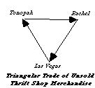 The thrift shop has also been in operation for some time. It started when Carol Phillips and Edith Grover donated some clothes. The thrift shop is part of an infinite recycling loop. Most of the clothes now come from the Tonopah Thrift Shop, which sends Rachel their unsold merchandise. In turn, any items not sold in Rachel are sent on to the big thrift stores in Las Vegas. What does Las Vegas do with its unsold merchandise? The suspicion is they are sent to Tonopah to continue the loop.